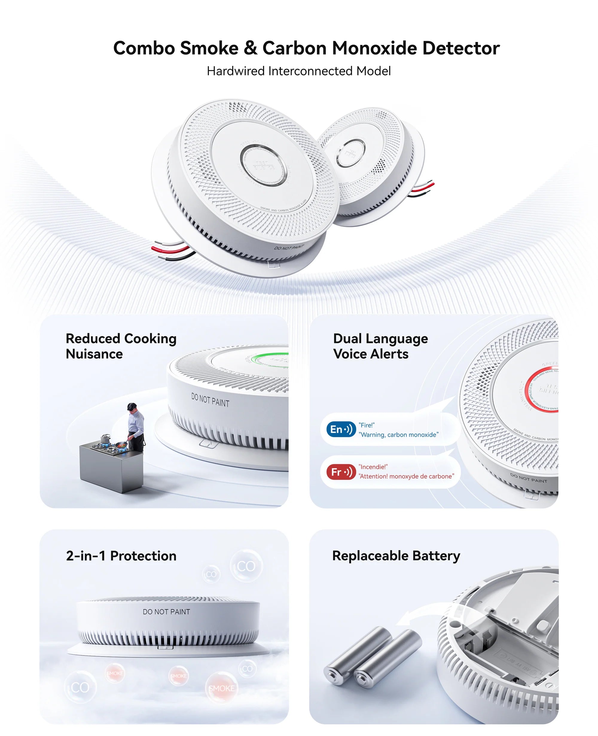 - Reduced Nuisance Alarms:Dual light wave technology distinguishes between cooking smoke and fire smoke.