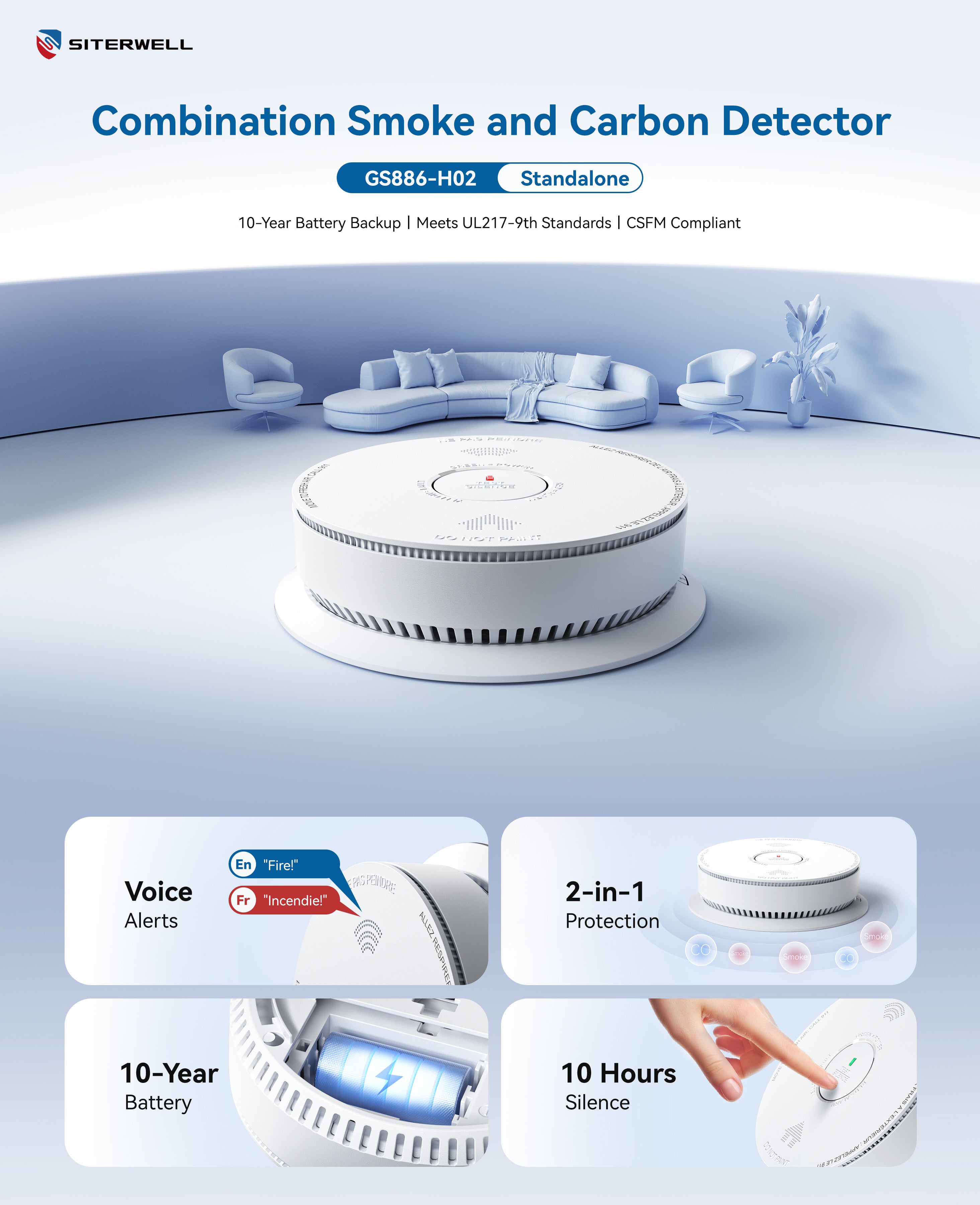 Siterwell GS886-H02 Standalone Smoke & CO Detector with 10-Year Battery